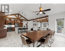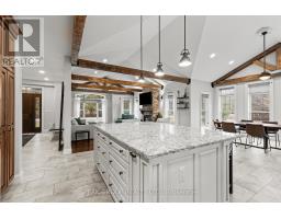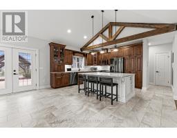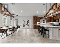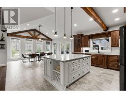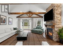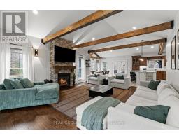 Welcome to luxury living in the heart of Pelham where privacy, charm, and lifestyle come together on a beautifully manicured property. From the moment you arrive, you're greeted by mature trees, expansive u-shaped driveway, and a stunning home featuring a wraparound porch-perfect for enjoying peaceful mornings and scenic surroundings. Step inside to a bright, open-concept main floor highlighted by soaring cathedral ceilings, exposed wood beams, and oversized windows that flood the space with natural light. The thoughtfully designed kitchen features a large island and generous dining area ideal for hosting, all seamlessly connected to a warm and inviting living room with a gas fireplace. Walk out from the kitchen to a covered deck built for entertaining, complete with a hot tub and views of the expansive backyard-your own private outdoor retreat. The main level also offers exceptional functionality, including a spacious mudroom with laundry, ample storage, separate backyard access, and entry to the attached 3-car garage. A guest bathroom and a main floor primary suite with a luxurious 5-piece ensuite provides convenient, main-level living. Upstairs, a loft-style office overlooks the staircase and leads to three additional bedrooms and a well-appointed 4-piece bathroom-perfect for growing families or guests. The fully finished basement extends your living space with a large open-concept recreation room, an additional bedroom, abundant storage, separate entrance to the garage, and a spacious wraparound cold cellar. A standout feature of this property is the beautifully finished accessory dwelling unit , currently set up as a premium home gym. Complete with a glass-tiled shower, loft space with glass railings, heating and cooling split system, and a garage door for seamless indoor-outdoor living. This versatile space offers endless possibilities. Whether used as a gym, future pool house, workshop, studio, or for the car enthusiast, this is a rare and valuable addition. (id:61594)