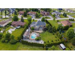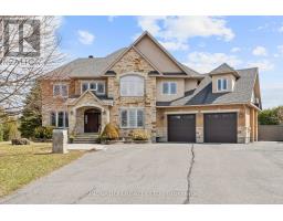 Stunning custom home in sought-after Maple Forest Estates, North Gower, set on a prime oversized private lot just minutes to the highway & under 30 mins to downtown Ottawa. A Canterra design, nominated for the 2010 Ontario Masonry Design Award, showcasing exceptional curb appeal & quality finishes throughout. Freshly painted, this home features a renovated kitchen with granite counters, large island & added cabinetry, open-concept living & dining areas, sunroom, and a versatile main floor office/bedroom with access to a full bath. Spacious family room with custom built-ins. Upper level offers new hardwood flooring throughout and a luxurious primary suite with custom walk-in closet, spa-inspired ensuite with jacuzzi tub, glass shower & private balcony. Bonus room over garage ideal for bedroom, gym or flex space. Fully finished lower level with bedroom, renovated bath, rec room with projector & custom movie wall, and in-ceiling surround sound. Exceptional garage space includes a heated double attached garage with radiant floors, epoxy finish, furnace & workshop potential, plus a detached garage-perfect for storage, hobbies or additional workspace. Step outside to a private, fully hedged backyard oasis featuring a saltwater inground pool, custom cabana with TV, speakers & sink, firepit, irrigation system, interlock, cast iron fencing, lighting & gas BBQ hookup-perfect for entertaining and relaxing. (id:61594)