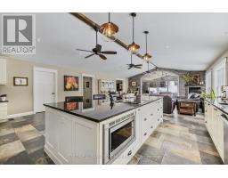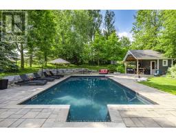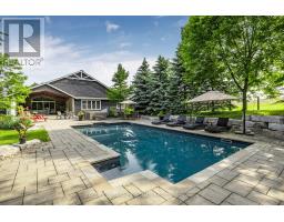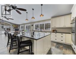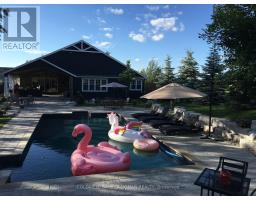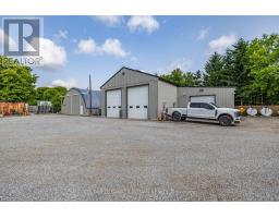 This stunning 6-bedroom, 6-bathroom bungalow on 10 acres just north of King offers luxurious living with the convenience of nearby amenities. The property is a rare find, featuring a barn with paddocks for animals, a spacious 35x60 ft shop, a 40x60 ft coverall, and an expansive gravel yard space. Inside, the beautifully designed home boasts a grand open-concept kitchen and family room, perfect for entertaining. Four of the five main-floor bedrooms include private en suites, while the primary suite offers a large ensuite, walk-in closet, and in-room laundry. The partially finished basement features heated floors, a bedroom and bathroom, a large gym area, and a reinforced concrete/rebar room designed for secure storage. Step outside to a fully landscaped backyard oasis, complete with an inground pool and hot tub, creating the perfect retreat. Extras: Hot Water Tank (Owned), Septic Tank Pumped (October 2024), In-Floor Heating In Basement. (id:61594)