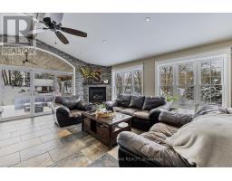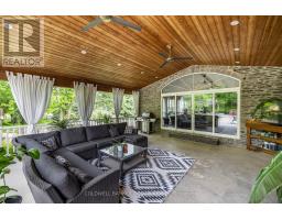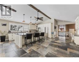 This stunning 6-bedroom, 6-bathroom bungalow on 10 acres just north of King offers luxurious living with the convenience of nearby amenities. The property is a rare find, featuring a barn with paddocks for animals, a spacious 35x60 ft shop, a 40x60 ft coverall, and an expansive gravel yard space. Inside, the beautifully designed home boasts a grand open-concept kitchen and family room, perfect for entertaining. Four of the five main-floor bedrooms include private en suites, while the primary suite offers a large ensuite, walk-in closet, and in-room laundry. The partially finished basement features heated floors, a bedroom and bathroom, a large gym area, and a reinforced concrete/rebar room designed for secure storage. Step outside to a fully landscaped backyard oasis, complete with an inground pool and hot tub, creating the perfect retreat. Extras: Hot Water Tank (Owned), Septic Tank Pumped (October 2024), In-Floor Heating In Basement. (id:61594)