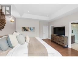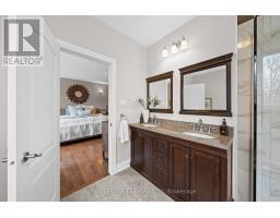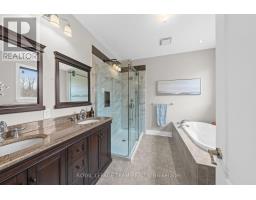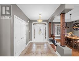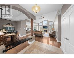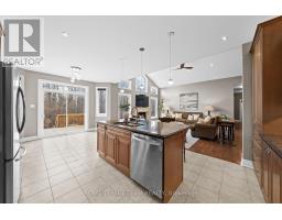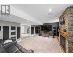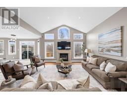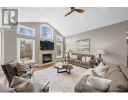 Nestled on a large premium lot backing onto woodland, this custom-built home blends comfort and style. Enjoy serene views of the backyard and mature trees beyond, while the welcoming front porch invites you to relax and take in the quiet, family-friendly streetscape. Thoughtfully designed with quality finishes, the home combines functionality with refined living. It features four bedrooms, four bathrooms, and a three-car garage, complemented by an open-concept living space with cathedral and tray ceilings, recessed lighting, and hardwood flooring. The great room is anchored by a natural gas fireplace, while the formal dining room provides an elegant setting for entertaining. The eat-in kitchen boasts granite countertops, ample cabinetry, stainless steel appliances, and a centre island with space for casual seating, while a spacious walk-in pantry ensures convenient storage. The primary bedroom serves as a private retreat, with a walk-in closet with custom built-ins and a well-appointed 5pc ensuite. Two additional bedrooms share a full bathroom. The finished lower level extends the living space for entertaining and everyday enjoyment, including a large recreation room with a wet bar, a home theatre with a gas fireplace, a versatile exercise room, a bedroom with a walk-in closet, and a full bathroom. Outdoors, the fenced backyard is framed by mature trees, creating a serene setting throughout the seasons. A spacious deck provides an ideal space to relax or entertain. Set in the Woodstream community, this home offers a wonderful lifestyle with exclusive access to amenities including a pool, tennis court, volleyball court, play area, walking trails, and green spaces. The association fee of $450 per year provides exclusive access to shared neighbourhood amenities. (id:61594)
