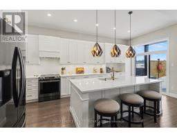 Gorgeous 3+1 bedroom bungalow by Woodfield Homes, located in a quiet, newer pocket of Morris Village in Rockland. Designed for both comfort and style, the main level features rich hardwood and ceramic flooring, cathedral ceilings, and an elegant double-sided gas fireplace that beautifully connects the living and dining areas. The sun-filled kitchen is the heart of the home, offering quartz countertops, a large island perfect for gathering, and an open flow into the inviting family room, where a second gas fireplace creates a warm, welcoming atmosphere. The spacious primary suite provides a private retreat with a luxurious 5-piece ensuite and walk-in closet.The fully finished lower level expands your living space with a fourth bedroom, generous recreation area, home gym, kitchenette/wet bar, full bathroom, utility room, and still plenty of storage space. Step outside to a fully fenced backyard designed for easy enjoyment, featuring tiered composite decking, landscaped gardens, and irrigation rough-in. The insulated double garage ensures year-round convenience. Ideally situated within walking distance to parks, outdoor skating rink, just minutes from the golf course, shopping, dining, and everyday amenities, this bright and beautifully maintained home delivers the perfect blend of space, comfort, and lifestyle. Pride of ownership, flex closing, come for a visit and stay a lifetime! (id:61594)