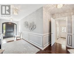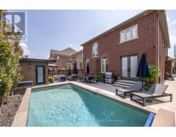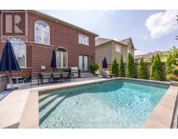 Experience refined living in prestigious Vellore Village with this meticulously maintained residence, where elegance, comfort, and thoughtful upgrades come together. Perfectly situated near top schools, parks, shopping, transit, and Vaughan's vibrant downtown, this home balances sophisticated design with everyday convenience. Inside, rich maple hardwood floors, detailed millwork, and an open-to-above family room create a dramatic yet welcoming atmosphere. The modern kitchen features quartz counters and a glass/ceramic backsplash, flowing seamlessly into the coffered dining room with built-ins. Main-floor laundry with exterior and garage access and upgraded eight-foot entry doors add both function and style. Upstairs, the private primary suite offers dual closets and a spa-inspired ensuite, while three additional bedrooms feature custom organizers. Two bedrooms with a shared bath, and the fourth enjoys its own ensuite. Premium window coverings, including an automated high family-room shade, complete the level. The fully finished basement provides a spacious recreation area, gym, office, three-piece bath, cold cellar, and abundant organized storage. Step outside to a resort-style backyard designed in 2021. The saltwater pool is fully automated with a rare safety cover, surrounded by patterned concrete, mature privacy trees, and landscape lighting. An outdoor oasis with built-in gas BBQ and a dedicated pool shed with premium storage complete this private retreat. Additional highlights include a double-car epoxy-finished garage with heavy-duty wall storage, four-car driveway, exterior security cameras, smart thermostat, HRV system, and 200-amp electrical service. This home is a rare offering in one of Vaughan's most desirable neighbourhoods, combining sophisticated interiors with an unmatched backyard oasis-a true life. (id:61594)