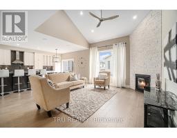Welcome to this stunning former Valecraft Bradley model home, offering over 2,200 sq ft of beautifully designed living space plus a finished basement. From the moment you enter, the home impresses with its modern finishes, open layout, and dramatic architectural features. The heart of the home is the spectacular two-storey great room with a floor-to-ceiling stone fireplace and open staircase overlook, creating a bright and inviting space ideal for entertaining and everyday living. The chef-inspired kitchen features extensive cabinetry, built-in appliances, quartz countertops, and a large island with seating, seamlessly connecting to the dining area and great room. A private main-floor office with glass doors provides an ideal work-from-home space, while designer finishes and wide-plank flooring throughout highlight the quality expected from a former builder model home. Upstairs, the spacious primary suite offers a walk-in closet and a luxurious ensuite with a double vanity, glass shower, and freestanding soaker tub. Two additional bedrooms and a full bathroom complete the upper level. The fully finished basement adds exceptional living space with a large recreation room, fireplace, and full bathroom-perfect for entertaining, family movie nights, or a home gym. Located in a desirable Stittsville neighbourhood close to parks, schools, shopping, and everyday amenities, this exceptional home offers model-home quality, modern design, and move-in ready convenience. (id:61594)