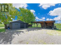 4.02 acres of rural paradise! This stunning hobby farm property features a "practically new" home and exceptional outbuildings, offering the opportunity to own a turnkey acreage in West Lincoln. An impressive 50' x 29' insulated Quonset workshop comes equipped with a water, concrete floor, wood stove and 70 amp electrical service. The home underwent a complete transformation in 2018 with majority of foundation, framing, electrical, plumbing, HVAC, interior and exterior finishing, and roofing updated. Main floor features include a spacious living space with soaring vaulted ceilings and a modern kitchen with white cabinetry and rich wood countertops. The dining room has garden door access to a covered 10' x 8' rear deck. 4 main floor bedrooms and a 5-piece bathroom complete the main level. A walk-up basement with a separate entrance offers potential for an in-law suite. The basement offers an additional bedroom, an expansive rec room and cold storage room. A modern 3-piece bathroom features a walk-in shower, oak vanity, penny tile flooring, and a decorative mirror. Additional outbuildings include: 29' x 16' garage/storage building with single car parking and wood storage area, an 11' x 23' storage building and an 18' x 30' carport with covered parking for three vehicles - complete with hydro service for added convenience. The chicken coop and dog shed both benefit from hydro service, ensuring your hobby farm operations run smoothly year-round. This property offers the ideal setting to enjoy the peace and privacy of rural living. With over 4 acres of land, premium outbuildings, a garden, and a fenced-in chicken coop, this hobby farm is truly a rare find where the possibilities are endless. (id:61594)