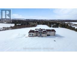 Custom-built estate on 23 pristine, flat acres in the heart of Mono offering over 8,600 sq ft of luxurious living space and less than one year old. This exceptional residence features a grand open-to-above foyer and family room, expansive principal living and dining areas, and a thoughtfully designed layout including a main-floor bedroom suite and four additional bedrooms upstairs with convenient second-floor laundry. Elegant wainscoting enhances the entrance, main living areas, select rooms, and the second-floor hallway, adding timeless architectural detail throughout. The chef-inspired kitchen is equipped with premium double-door Sub-Zero refrigeration, a 48-inch gas range with pot filler, extensive custom cabinetry, and a separate spice kitchen with abundant additional storage. Custom closet organizers are installed in all bedrooms, along with built-in storage in the mudroom and laundry room for enhanced functionality. Ultra-thin electric radiant heated floors beneath high-end tile provide added comfort in the entrance, great room, and all bathrooms. A striking fireplace finished with large-format European tile creates a dramatic focal point in the main living area. A modern heat pump system and spray foam insulation in all exterior walls ensure superior efficiency and year-round comfort. The fully finished walk-up basement offers both interior and exterior access and includes a private theatre room and spacious recreation areas. Designed for elevated living, the home also features a private residential elevator and a large indoor in-ground pool for year-round enjoyment. Exterior highlights include a timeless limestone façade, classic brick siding, durable metal roof with lifetime warranty, and striking metal front and side doors with glass enclosure. Two balconies overlook the scenic countryside, while the expansive acreage offers privacy and long-term value-approximately 10 minutes from Orangeville and all essential amenities. (id:61594)