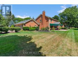 Welcome to 6748 January Drive. Nestled in Niagara Falls' coveted Calaguiro Estates, this distinguished two-storey brick home is one of the community's original showpieces, offering a rare blend of timeless character and enduring value. Set on a private 157 x 166-foot corner lot, the property is wrapped in mature trees and manicured gardens, creating a level of privacy seldom found in the city. With more than 2,500 sq. ft. above grade plus a professionally finished lower level, there is abundant space for everyday living and memorable entertaining. Inside, light-filled rooms reveal decades of careful stewardship. The main floor flows easily from formal living and dining rooms with rich hardwood floors, to a generous family room with a classic gas fireplace, and a bright eat-in kitchen that opens to the back terrace for effortless indoor-outdoor living. Upstairs, the serene primary suite overlooks the gardens, while three additional bedrooms offer flexible space for family, guests, or a home office. The lower level adds an expansive recreation area ideal for movie nights, games, or future in-law potential. Outdoors, the rear gardens form a private sanctuary with a broad patio and retractable awning for long summer evenings, plus room to play, garden, or even add a pool or future addition. A double garage and extended driveway accommodate up to eight vehicles. Steps from premier schools, parks, and shopping, this residence pairs classic design with exceptional space in one of Niagara's most sought-after settings. (id:61594)