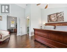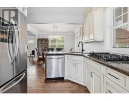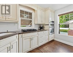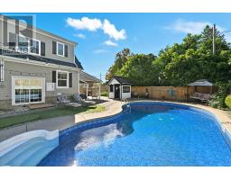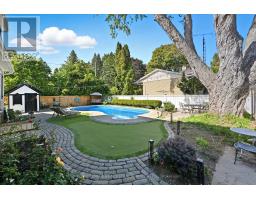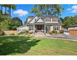 Rebuilt in 2016, this Craftsman-inspired residence blends timeless character with modern sophistication on an extra-wide 75' x 140' lot (0.229 acres) surrounded by mature trees. The exterior features Hardie Board concrete siding with stone accents, while the interior showcases arched entryways, transom windows, and rich hardwood flooring that create a light-filled, seamless flow. The open concept main level is ideal for family living and entertaining. The living room with an electric fireplace and warm finishes leads to the dining area, which opens to a covered portico with pot lights, ceiling fan, and tongue-and-groove wood ceiling. The family room is bright and inviting, highlighted by a large picture window overlooking the backyard oasis. The kitchen impresses with granite countertops, gas cooktop, KitchenAid wall oven and microwave, and stainless steel appliances. A main floor office/bedroom with a painted brick accent wall provides the perfect work-from-home retreat, while the modern heritage two-piece bath adds vintage charm. Upstairs, vaulted ceilings and transom windows enhance the sense of space and light. The primary bedroom boasts a dramatic lofted ceiling, walk-in closet with built-ins, and hardwood floor. The loft-style bedroom features a ladder, exposed beam, and desk area, while the junior primary offers a metallic accent wall, chandelier, walk-in closet, and three-piece ensuite with body-jet shower and heated floor. The main bath includes a freestanding tub, quartz vanity, and heated floor. The finished lower level adds a three-piece bath and laundry room with LG washer and Kenmore Elite dryer. Outside, enjoy a fully fenced yard with stone patio, turf putting green, rose garden, and kidney-shaped pool (new liner 2024). The standalone garage, reimagined as a British-style pub, provides a one-of-a-kind entertaining space. A warm, timeless, and inviting home - where craftsmanship meets everyday comfort in one of Burlington's most coveted neighbourhoods. (id:61594)