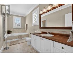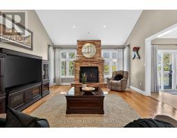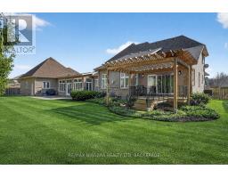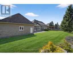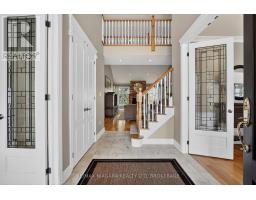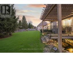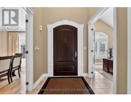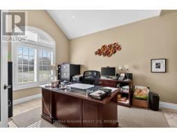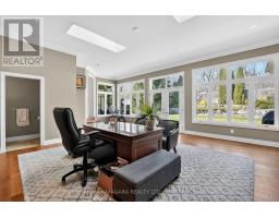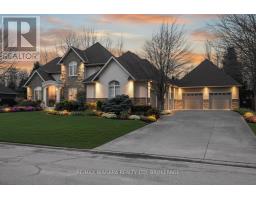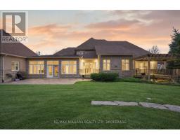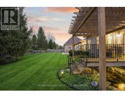 Welcome to an exceptional estate in Calaguiro Estates, widely regarded as the most prestigious neighbourhood in Niagara Falls. Situated in the desirable north end with quick access to the QEW and everyday amenities, this remarkable residence sits on an expansive 118 x 200 ft lot backing onto the escarpment with no rear neighbours, offering rare privacy. With over 6,000 sq ft of living space, soaring ceilings and expansive windows create a bright and sophisticated atmosphere throughout. The main level features a dramatic living room, formal dining area, private office, and a custom kitchen with French doors opening to a stunning backyard retreat. The main-floor primary suite offers a spa-inspired ensuite and custom walk-in closet, while the upper level features three spacious bedrooms with their own private and shared ensuites. The lower level includes a versatile in-law suite, ideal for extended family or guests. Completing the home is a rare five-car garage and a beautifully landscaped backyard with natural armour stone and a breathtaking escarpment backdrop. A rare opportunity to own an estate property in one of Niagara's most distinguished communities. Luxury Certified. (id:61594)