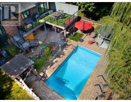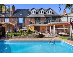 Rare opportunity in Ancaster! Professionally renovated executive home offering over 5,000 sq. ft. of finished living space in one of Ancaster's most sought-after neighbourhoods. This handsome property features 4+1 bedrooms, 5 bathrooms, and 3,689 sq. ft. ABOVE GRADE, with an additional 2,048 sq. ft. finished WALKOUT lower level, providing exceptional living space. A standout and rare feature of this home is the separate self-contained in-law / nanny suite with private front and rear entrances. This thoughtfully designed space includes a full kitchen, living room, bedroom, and bathroom, offering an ideal setup for multigenerational living, shared family arrangements, live-in caregivers, guests, or potential income opportunities, while maintaining privacy and independence. The main level showcases dark hardwood flooring, upgraded doors and trim, and thoughtfully curated finishes throughout. The chef-inspired kitchen serves as the heart of the home, featuring a large quartz island, premium appliances, and ample space for both everyday living and gathering. Elegant principal rooms include a formal dining area, an inviting family room with skylights, formal sitting room, and a dedicated library or home office. Renovated bathrooms throughout the home feature modern fixtures and spacious glass showers. The primary bedroom retreat is truly exceptional, complete with a luxurious 5-piece ensuite and expansive walk-in closet, creating the perfect private sanctuary. Unique nursery connected to primary bedroom. Step outside to a beautiful backyard oasis designed for relaxation and entertaining, featuring a pool, hot tub, gazebo, expansive deck with awning, stone patio, and storage shed - an ideal setting for memorable gatherings with family and friends. Double garage and spacious driveway provide ample parking and convenience. Ideally located close to top-rated schools, parks, golf courses, conservation areas, shopping, and major highway access (id:61594)