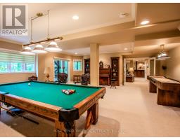 Welcome to this impressive two-storey brick estate, thoughtfully designed for space, flexibility, and everyday practicality. Set on a private 0.859-acre lot in a quiet estate neighbourhood, this property offers over 7,000 sq. ft. of finished living space, making it an excellent fit for large or multi-generational families seeking room to grow without sacrificing convenience.The classic red brick exterior, triple-car garage, and expansive interlock driveway create strong curb appeal and long-term durability. Mature trees and established landscaping provide privacy and a peaceful setting. Despite the serene surroundings, the home remains close to shopping, schools, and daily amenities, striking a rare balance between space and accessibility.Inside, the well-planned layout supports both daily living and entertaining. The main residence includes four generous bedrooms, formal living and dining rooms, and a separate main-floor family room-ideal for busy households and larger gatherings. The kitchen features ample cabinetry and a bright breakfast area with direct access to the yard. The fully finished walkout basement adds exceptional versatility with a large recreation room, built-in bar, and multiple seating areas-perfect for entertaining, hobbies, or family movie nights. A key highlight is the self-contained one-bedroom suite, located above grade with its own private entrance and access to a separate lower-level games room with walkout. This space is well suited for in-laws, adult children, or extended family, offering privacy and independence while remaining connected to the main home. Multiple fireplaces add warmth throughout, and the adaptable floor plan easily supports evolving family needs, remote work, or long-term multi-generational living. A rare estate property that delivers space, privacy, and proximity to amenities-built to support real life at every stage. (id:61594)