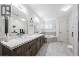 Step inside this stunning 5 bedroom, 2.5 bath, 2748 sq. ft home located directly beside lush greenspace in sought after Binbrook community. Enjoy privacy and open space to the west side of the property giving families additional space to enjoy the outdoors. Losani built home with 70k of recent upgrades. Thoughtfully designed interior for those who love to entertain. Welcoming large foyer leads to open concept layout flowing seamlessly from a chef inspired kitchen-featuring a large 6-person quartz island, brand new appliances, walk in pantry, stunning extended cabinetry with undermount lighting and ample prep space check off all the I wants in this kitchen. Spacious living area highlighted by a custom stone-faced entertainment wall and rich hardwood floors throughout. Walk out patio doors lead to tastefully and professionally finished backyard space equipped with concrete patio, gazebo and shed. Wood staircase leads to bedroom level featuring 5 bedrooms blanketed in hardwood floors with second level laundry. Luxurious master bedroom features his/her large walk in closets and ensuite bathroom. With roughly 8’4” ceiling height, roughed in full bath, and approximately 1,100 square feet of customizable space, the unfinished basement is waiting for your finishing touches. Great curb appeal highlighted with concrete veranda/steps with aggregate border and professionally installed soffit LED Gemstone Lighting System to welcome you home.Style comfort and functionality come together perfectly in this beautiful modern home (id:61594)