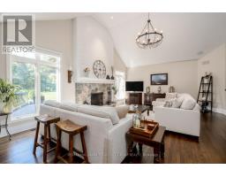 BUNGALOW IN NOBLETON ESTATES OFFERING 3,100+ SQ FT, EXQUISITE FINISHES THROUGHOUT & A RESORT-STYLE BACKYARD ON NEARLY 3/4 ACRE! Nestled within the prestigious Nobleton Estates, this extraordinary bungalow spans nearly 3/4 of an acre, enveloped by soaring trees and lush gardens that provide exceptional privacy. The exterior impresses with a timeless brick and stone facade, manicured landscaping with an irrigation system, an interlock walkway, a triple-car garage, and a covered entryway with double doors. Offering over 3,100 finished sq ft, the interior showcases crown moulding, hardwood floors, pot lights, and an abundance of natural light. The chef-inspired kitchen is a true culinary masterpiece, showcasing white cabinetry with glass accents, stone countertops, a generous island with seating, and premium stainless-steel appliances, including an Electrolux Icon fridge, a Bosch dishwasher, and a 48 BlueStar six-burner gas stove with griddle and dual ovens beneath a commercial-style range hood. The living room is defined by a vaulted ceiling, an opulent chandelier, and a floor-to-ceiling stone fireplace accented with shiplap detail. The primary bedroom presents a walk-in closet and a spa-like 5-pc ensuite, complete with a dual vanity, vessel sinks, a glass-enclosed shower, a soaker tub, and heated floors. The finished lower level extends the living space with a stylish bar, a sprawling recreation room with a gas fireplace, a fourth bedroom, and a 3-pc bath. Outdoors, the property transforms into a private resort, presenting an expansive composite deck, a pavilion, a pergola, a newer stone patio, a large swim spa with bar seating, and a stunning three-season sunroom. Additional highlights include an integrated indoor and outdoor sound system, a water softener, a water treatment system, and newer owned mechanicals including the water heater, furnace, and A/C. This is a rare offering in Nobleton where luxury living reaches an entirely new level. (id:61594)