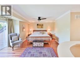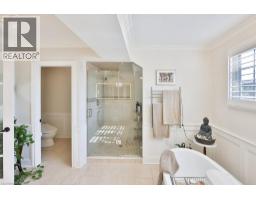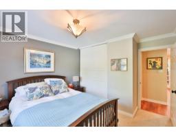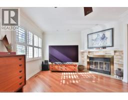 Steps to Brontes Waterfront Trail; Renovated 3-Bedroom, 2,362 sq. ft. Freehold Townhome in the Exclusive Schooners Reach Enclave. Walk along Lake Ontario to Bronte Harbour and the shops, cafés, and restaurants of Bronte Village. Offering 2,362 sq. ft. of updated living, this residence combines natural beauty and urban convenience, with easy access to highways and Bronte GO. The main floor features a renovated white eat-in kitchen with granite counters , stainless steel appliances and an open-concept living and dining room featuring hardwood floors, smooth ceilings, crown mouldings, and a striking floor-to-ceiling ledgerock fireplace. There is also a 2pc bathroom on the main floor and a walkout to a large private terrace surrounded by perennial planters with steps down to the green space. Upstairs, a circular staircase leads to a family room with fireplace, 2 spacious bedrooms, a beautifully renovated 3-pc bath with glass shower and the laundry. The 3rd floor is a dedicated primary suite with 5-pc ensuite, double vanity, 2 custom closets, and a private balcony overlooking the treed green space. The lower level offers a versatile office/gym/rec room, storage, and inside entry from the double garage. All this in a lovely community of freehold homes just 1km from the core of vibrant Bronte Village. (id:61594)