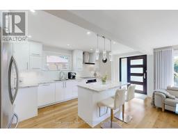 Location! Location! Location! This stylish and beautifully designed home is nestled on a family-friendly, quiet cul-de-sac in the highly desirable Eatonville neighbourhood of Etobicoke. This house has been wonderfully renovated, offers approximately 1700 sq. ft. of living space and a blend of modern design with luxury finishes. The main floor with open-concept living, dining and kitchen area providing the perfect space to entertain friends and family or relax in comfort. Enjoy a high-quality renovated kitchen, features an expansive island with countertops that seamlessly flow into the backsplash, pendant lighting, custom built-ins, a glass cooktop stove, double sink - this kitchen offers it all. Gleaming oak hardwood flooring, pot lights and baseboards throughout. Tastefully renovated bathroom with tiled shower. New entrance aluminum door with 1-inch unit glass, all new windows with stainless steel flashing frames. Outside, front yard with stainless steel railings and glass panels significantly enhance to the home's curb appeal. Roof (2019).The massive lower-level basement with separate side entrance offers a large recreation room, new above-grade windows, wide waterproof plank laminate flooring, pot lights, new custom eat-in kitchen, a modern 3-piece bathroom with a glass door leading to the rough-in sauna space and lots of storage space. A bonus open area that inspires your design ideas, with the potential to add a 4th bedroom if desired for rental income. Step outside to the pie-shaped, fully fenced backyard - a private family paradise featuring a custom-covered patio, storage shed and space. One of the key highlights of this property is the oversized 1.5 detached car garage. Conveniently located in one of Etobicoke's best school districts, close to all amenities, parks, shopping, and just minutes to major highways (401, 427 & QEW)- this home offers the perfect balance of tranquility and convenience. Location Is Everything! Don't miss this incredible opportunity! (id:61594)