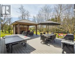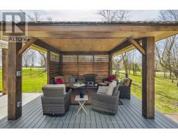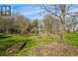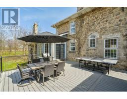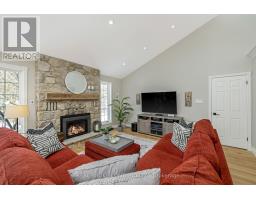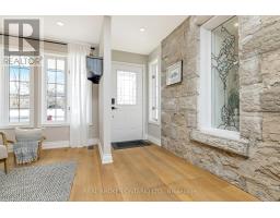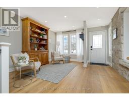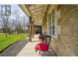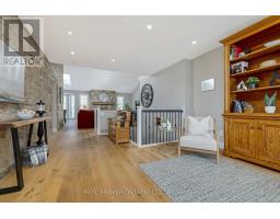 This enchanting stone home on a meticulously landscaped 1.98-acre lot, originally built in 1906, beautifully blends timeless history with contemporary living. The original stone craftsmanship stands as a testament to its heritage, while thoughtful renovations provide the perfect balance of old-world charm and modern comfort. This home features three spacious bedrooms, including a luxurious primary suite with a large walk-in closet, custom built-ins, and a striking shiplap ceiling. The spa-inspired 5-piece ensuite includes a deep soaking tub and a glass-enclosed rain shower, offering a serene retreat. The additional bedrooms share a stylishly updated 3-piece bathroom. At the heart of the home is a beautifully renovated gourmet kitchen, complete with stainless steel appliances, a classic farmhouse sink, and a spacious center island, ideal for both cooking and entertaining. The dining room, which features a built-in coffee bar, flows seamlessly into the cozy living room, creating a warm and inviting ambiance. Natural light pours into the charming breakfast nook, which opens onto a low-maintenance Trex deck with sleek glass railings. This outdoor space leads to a 15' x 14' cedar-shake gazebo, an ideal setting for enjoying a morning coffee or hosting evening gatherings. The family room, with its vaulted ceiling, recessed lighting, and inviting gas fireplace, provides the perfect spot to unwind. A den at the front of the home, showcasing exposed stone walls, offers a quiet retreat for reading or reflection. Completing the main floor is a convenient mudroom with garage access, main-floor laundry, and a stylish powder room. The finished lower level includes a bright recreation room with a gas fireplace, a kitchenette with a separate entrance, and a 4-piece bath. The original basement, with exposed stone walls and concrete floors, offers versatile space for storage or imagination. (id:61594)