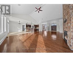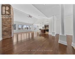 Absolutely gorgeous freshly painted 4-bedroom home on a beautifully landscaped 1/2-acre lot. The main floor offers a bright open concept floor plan with a kitchen featuring a beautiful, oversized island, as well as a living/dining area, perfect for family gatherings. Hardwood floors, vaulted ceiling and floor-to-ceiling stone fireplace. The other side of the main level consists of 3 good sized bedrooms plus an office room. Master Suite includes an en-suite bath with soaker tub, walk-in shower and double sinks. Many windows offer a peaceful view of the backyard. Double patio doors from the eating area leading to the large deck among the trees. The large basement is designed to entertain, included are bar taps, and dishwasher at the bar. You'll love the custom-built 16' bar, playground, fireplace and 9' ceilings, including a practical 4th bedroom with a 3pc bathroom. A 3-car garage is also always a plus. (id:61594)