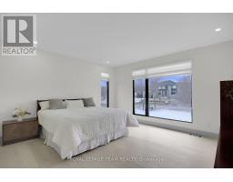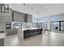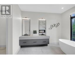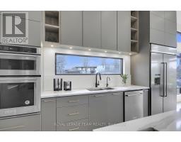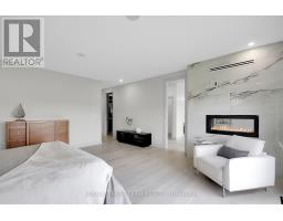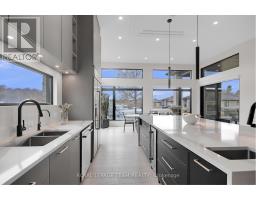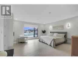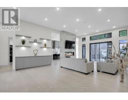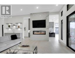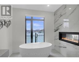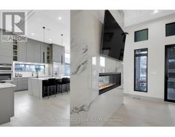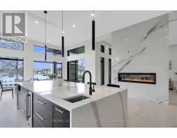 This expansive custom-built bungalow offers 6 bedrooms and 5 bathrooms, showcasing elegant wide plank oak hardwood flooring, oversized windows, and exquisite craftsmanship throughout. Designed with modern living in mind, the open-concept layout welcomes you through a stylish foyer into a grand living room that seamlessly extends to a covered veranda, complete with a cozy wood-burning fireplace. The chef-inspired kitchen is a true centrepiece, featuring a stunning waterfall quartz island with generous seating, quartz backsplash, gas cooktop, and a bright breakfast nook perfectly complemented by a separate formal dining room for more refined gatherings.The luxurious primary suite is a private retreat, boasting a spacious walk-in closet with custom vanity, a 5-piece ensuite with double sinks, a glass-enclosed shower, freestanding soaker tub, and a gas fireplace for added comfort. Three additional bedrooms are located on the main floor, two of which offer private en-suites. The fully finished lower level features heated floors throughout, three large bedrooms, a full bathroom, and a vast recreational space with endless potential for entertainment or relaxation. Additional highlights include a heated 3-car attached garage with soaring 20-ft ceilings and a fully integrated smart home system with wireless control and state-of-the-art 5-zone wireless speakers. Please note that lower level rooms have been virtually staged. (id:61594)