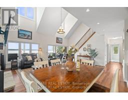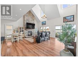 Discover the perfect blend of luxury and tranquility in this custom built home on the shores of Lake Scugog. Just under 3000 sq. ft. and pot lights inside and out, this thoughtfully designed property welcomes you with soaring vaulted ceilings and an open concept layout where breathtaking lake views fill every window. The chefs kitchen is an entertainers dream with custom cabinetry, two built in ovens and warming drawer, a six burner gas range, wine fridge, and a spacious breakfast area. The kitchen flows seamlessly into the dining and living areas, with a beautiful chandelier which leads to the patio doors opening to a covered patio, landscaped yard, fire pit, and the sparkling waters of the lake. The main level offers two bedrooms; a versatile third bedroom featuring a built in murphy bed, making it ideal for guests or flexible use. The second bedroom includes custom cabinetry in the closet, adding both style and functionality. A full washroom, a large laundry room, and direct access to the two car garage complete this level. Upstairs, the primary retreat boasts two oversized walk in closets and a spa like five piece ensuite. An open office/flex space with incredible views leads to a bonus flex/games room, perfect for relaxation or family fun.The property also features a bunkie, a true blank canvas ready to be transformed into whatever you envision guest space, studio, or private hideaway. The grounds are beautifully manicured, offering endless ways to enjoy every season. This is a year round property with municipal road access and easy convenience. Summers invite boating, swimming, or jumping off your dock, while winters bring serene mornings on the deck with coffee or cozy evenings by the fire as the snow falls.Every inch of this home has been carefully designed for comfort and entertaining, making it a rare and remarkable find on Lake Scugog! (id:61594)