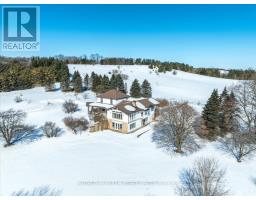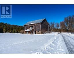 Almost 200 acre property with dramatic views and highly productive soils. A long winding drive leads past the immaculately restored bank barn to the charming farm house. Come see the dramatic views, rolling hills, pond and majestic trees. One-of-a-kind large acreage landholding in south New Tecumseth. Paved road and very quiet location. This farm generates strong income from its tenant farmer and solar panels. The newly renovated bank barn has a heated living area with a 3-piece bathroom, living room, kitchen (rough in), private entrance, large studio space. The barn is in immaculate condition with space for 6 stalls, wash rack, tack room and loads of storage. The barn has its own septic and could be adapted into many other uses. Classic Ontario farmhouse with covered wrap-around porch, stone fireplace, open concept kitchen with breakfast bar and breakfast room, finished walk-out lower level with recreation room, 2nd kitchen, woodstove with stone surround. A light-filled home with vaulted ceiling in living room and long views over the property. (id:61594)