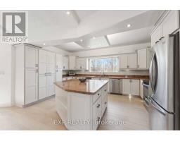 This exceptional custom-designed bungalow situated on Bank Street showcases high-end finishes and remarkable versatility, all set on a beautifully landscaped private acre. The homes distinctive circular layout is filled with natural light, thoughtfully connecting the living, dining, and kitchen areas around a striking multi-sided fireplace accented with granite, fostering a cozy and welcoming atmosphere. Elegant marble tile graces the foyer and hallway, lending an air of classic sophistication. The expansive kitchen is a culinary and entertaining haven, featuring stainless steel appliances, granite countertops, and abundant custom solid wood cabinetry that combines practicality with refined style. The lavish primary suite provides a peaceful sanctuary, complete with a spacious five-piece ensuite that includes a spa-inspired soaker tub, a glass-enclosed shower, a large double vanity, and a walk-in closet outfitted with custom shelving and organizers. Additional well-appointed bedrooms, upgraded bathrooms with heated flooring, and the convenience of main-floor laundry enhance the homes appeal. A separate entrance leads to the basement, where pre-installed plumbing offers the potential for a secondary suite or customized living space. This residence perfectly balances sophistication, comfort, and endless possibilities. Book your private tour today! Freshly painted, LVF flooring, Eavestroughs and landscaping (2024). (id:61594)