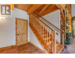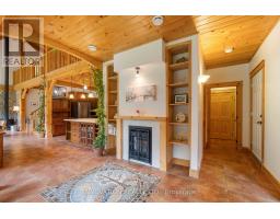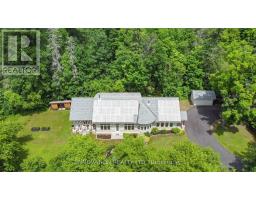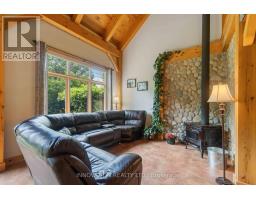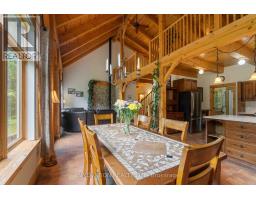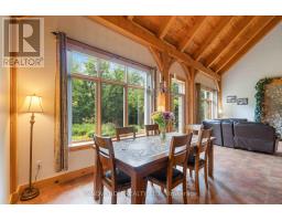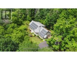 Discover your Urban Oasis! This custom-designed, ecologically sustainable post-and-beam home sits on a serene peninsula in Pembroke, with 2.8 acres of lush forest. Enjoy privacy and natural beauty while having all amenities at your doorstep. The open-concept main level boasts 23-ft ceilings and features a newly renovated kitchen with custom pine cupboards, quartz countertops, and modern appliances. Relax in the curved sitting area with a gas fireplace or by the wood stove in the living room. The main level includes an office, two full bathrooms, and three bedrooms, including the primary suite with a walk-in closet and sliding doors leading to a patio with river views. The upper level offers bonus rooms, a large storage area, and a fourth bedroom overlooking the garden. Updates include paved driveway with a gate 2023, new washer & dryer 2022, infrared sauna 2023, new owned hot water heater 2025. Additional features include two outdoor sheds, a hot tub, and solar panels providing passive income. Book your showing today! (id:61594)