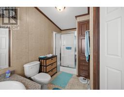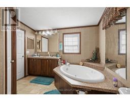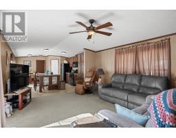 Set in a quiet, elevated location within a well-kept land-leased community, this modern 80 x 16 mobile home offers comfortable, low-maintenance living surrounded by nature. Designed for ease and functionality, the open-concept layout seamlessly blends the living room, kitchen, and dining area, perfect for both daily living and entertaining. The kitchen features rich cabinetry, a large center island, and ample storage space, creating a warm and inviting hub of the home. With two generously sized bedrooms thoughtfully placed at opposite ends, you'll enjoy maximum privacy. The spacious primary suite includes a luxurious ensuite with a deep soaker tub, while a second full bath conveniently serves guests and the second bedroom. Step outside to a large private deck, ideal for outdoor dining or simply unwinding in a serene setting. Recent upgrades include a new furnace and heat pump (June 2024), providing efficient, year-round comfort. Located just 15 minutes from Kingston, this home offers a perfect blend of quiet countryside living and convenient access to city amenities. Park fees include property taxes for added peace of mind. (id:61594)