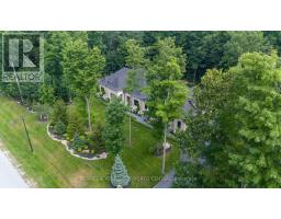Welcome to 7 Apto Court in prestigious Apto Glen Estates, Springwater. This spectacular custom-built home is set on a private, naturally treed 1.48-acre lot on a quiet court, offering approximately 4,800 sq. ft. of beautifully finished living space. Designed for both luxury and functionality, the home features soaring 10-foot ceilings, a stunning blend of handmade clay brick, heated ceramic floors, and white oak hardwood throughout, along with a thoughtfully designed main floor layout and a versatile loft/nanny suite.The gourmet kitchen is complemented by high-end cabinetry, premium countertops, top-of-the-line appliances, and a spacious walk-in pantry, flowing seamlessly into elegant living spaces anchored by a gas fireplace. The fully finished lower level offers additional living space with radiant in-floor heating, including a home office, games room, and separate entrance, ideal for extended family or guests.Outdoor living is equally impressive, featuring a heated 18' x 36' saltwater pool, inground spa, double-sided wood-burning fireplace, and power outdoor screens, creating a true resort-style setting. Additional highlights include oversized garage doors, a separate heated shop building, custom closets, and a fully fenced yard. A rare opportunity to own a private estate property in one of Springwater's most sought-after communities. (id:61594)