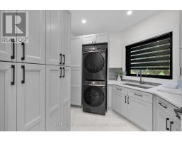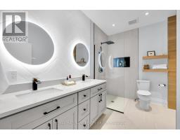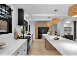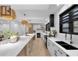 Welcome to a property that redefines luxury living. This exceptional 3+1 bedroom, 2+1 bathroom solid brick bungalow has been completely renovated from top to bottom, with no detail overlooked. From the moment you step inside, the grandeur is unmistakable. The sunken living room, featuring 12-foot ceilings, skylights, and a striking fireplace, creates an atmosphere of elegance and warmth. The designer kitchen is a true showpiece with a stunning 15-foot quartz island, premium appliances, skylights, and flawless maple hardwood floors flowing throughout the main level. The primary suite offers both comfort and sophistication with a spa-inspired ensuite featuring 36" wide doors, double sinks, an open-concept shower, and ample storage. The additional bedrooms and main bath echo the same high-end finishes, with a beautiful tub and walk-in shower. The main floor laundry room provides an impressive amount of cabinetry and organization space, while the fully insulated double garage easily accommodates four vehicles. The walk-out lower level feels like its own home-complete with a full kitchen, dining and living areas, bedroom, bathroom, and a secondary laundry room. Perfect for multi-generational living or as a luxurious guest suite. Step outside to an interlock backyard that opens directly onto a park, offering tranquility and privacy with no rear neighbours. Every inch of this home reflects thoughtful design and refined taste-rarely does a property of this caliber come to market. A true one-of-a-kind masterpiece where luxury and comfort coexist in perfect harmony. (id:61594)