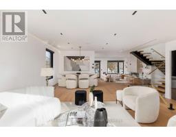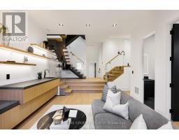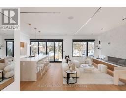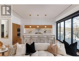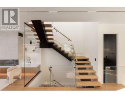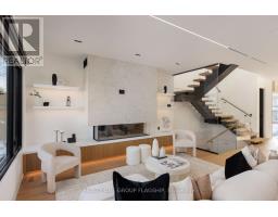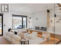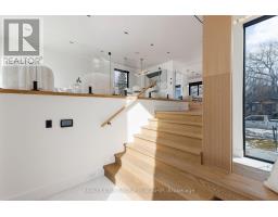 A commanding architectural statement in prestigious Stonegate-Queensway, this newly completed custom residence is thoughtfully crafted by an HCRA-licensed builder and backed by the full Tarion Warranty. Offering approx 3,650 sq ft of curated living space with 4+1 beds & 5+1 baths, the home is defined by architectural clarity, material integrity & refined restraint. A dramatic 14-ft foyer introduces interiors where soaring ceilings, wide-plank white oak floors, bespoke millwork & a fully trimless shadow-reveal design create crisp, uninterrupted lines and a gallery-like atmosphere, enhanced by layered architectural lighting throughout. A sculptural floating mono-beam staircase wrapped in ultra-clear glass rises as a striking focal point, while a porcelain feature wall with a 3-sided fireplace anchors the principal living space with warmth & presence. The chef's kitchen showcases a waterfall porcelain island, handcrafted fluted cabinetry & a professional Sub-Zero & Wolf appliance suite seamlessly integrated into the design. Expansive walls of glass & 9 skylights draw natural light across every level, complementing curated interior illumination and heightening the home's sense of scale and calm. Integrated Control4 automation provides effortless control of lighting, audio, security & motorized window coverings. Upstairs, the primary retreat offers boutique-hotel serenity with custom millwork, a generous walk-in closet & a spa-inspired ensuite finished in rich porcelain & refined fixtures, while each add'l bedroom enjoys ensuite access. The bright walk-up lower level continues the architectural narrative with 10-ft ceilings, a bespoke wet bar, rec lounge, add'l bedroom & full bath. A bold contemporary façade defined by aluminum panel detailing, precision fluted elements & architectural exterior lighting, complemented by professional landscaping, completes this architecturally refined modern residence mins to top schools, waterfront trails, Mimico GO & downtown Toronto. (id:61594)
