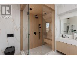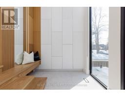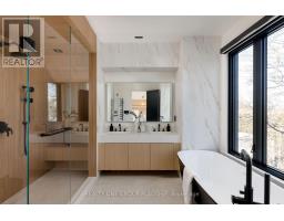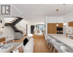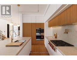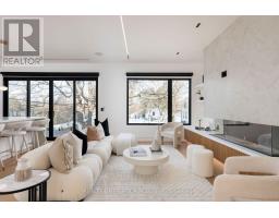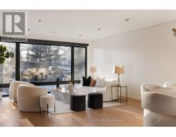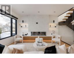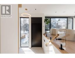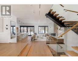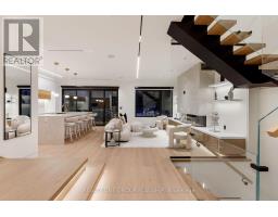 A commanding architectural statement in prestigious Stonegate-Queensway, this newly completed custom residence is thoughtfully crafted by an HCRA-licensed builder and backed by the full Tarion Warranty. Offering approx 3,650 sq ft of curated living space with 4+1 beds & 5+1 baths, the home is defined by architectural clarity, material integrity & refined restraint. A dramatic 14-ft foyer introduces interiors where soaring ceilings, wide-plank white oak floors, bespoke millwork & a fully trimless shadow-reveal design create crisp, uninterrupted lines and a gallery-like atmosphere, enhanced by layered architectural lighting throughout. A sculptural floating mono-beam staircase wrapped in ultra-clear glass rises as a striking focal point, while a porcelain feature wall with a 3-sided fireplace anchors the principal living space with warmth & presence. The chef's kitchen showcases a waterfall porcelain island, handcrafted fluted cabinetry & a professional Sub-Zero & Wolf appliance suite seamlessly integrated into the design. Expansive walls of glass & 9 skylights draw natural light across every level, complementing curated interior illumination and heightening the home's sense of scale and calm. Integrated Control4 automation provides effortless control of lighting, audio, security & motorized window coverings. Upstairs, the primary retreat offers boutique-hotel serenity with custom millwork, a generous walk-in closet & a spa-inspired ensuite finished in rich porcelain & refined fixtures, while each add'l bedroom enjoys ensuite access. The bright walk-up lower level continues the architectural narrative with 10-ft ceilings, a bespoke wet bar, rec lounge, add'l bedroom & full bath. A bold contemporary façade defined by aluminum panel detailing, precision fluted elements & architectural exterior lighting, complemented by professional landscaping, completes this architecturally refined modern residence mins to top schools, waterfront trails, Mimico GO & downtown Toronto. (id:61594)