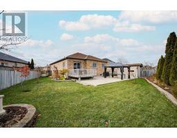 Welcome to this beautifully upgraded 3-bedroom bungalow, perfectly situated on a premium pool-sized, pie-shaped lot in a quiet, highly sought-after court. Offering 9 ft ceilings and filled with natural light, this home features a spacious great room with beautiful stone fireplace that has a built in TV niche, garage access and an inviting eat-in kitchen complete with granite counters and stainless steel appliances. The main bath and primary ensuite showcase neutral, modern finishes. The finished lower level offers an abundance of space, incredible potential and multiple possibilities for customization. It is currently ideal for entertaining or relaxing, complete with heated floors, pot lights, surround-sound wiring, a 3-piece bath, and a large cantina with abundant storage. Outside, enjoy a generous fenced yard with an in-ground irrigation system (as is), a massive 9' x 14' storage shed (with a separate electrical panel and newer siding)and a concrete deck and walkway. Additional features include automatic garage door opener, central vac and hardwood floors. This exceptional home offers both comfort and functionality-truly a must-see. (id:61594)