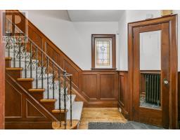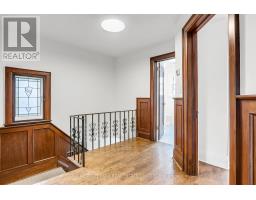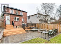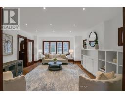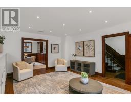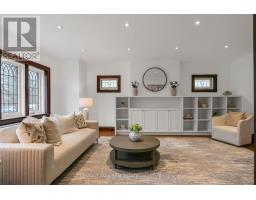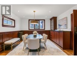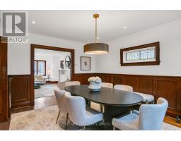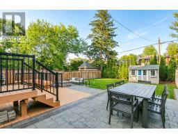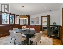 This gracious, tastefully renovated family home on one of Leaside's most coveted streets offers an exceptional blend of timeless character and thoughtful modern updates. Rich in charm, this residence showcases original details including leaded and stained glass windows, etched French doors, and classic gumwood wainscotting, seamlessly complemented by custom built-ins designed for both aesthetics and functionality. The principal rooms are bright, spacious, and beautifully proportioned for everyday living and elegant entertaining. The expansive living room features a full wall of custom cabinetry, while the dining room is enhanced by original gumwood built-ins for extra storage and to hold a convenient wine fridge. The renovated eat-in kitchen offers quartz countertops and abundant cabinetry. A charming den or sitting room overlooks the deep rear garden, with a discreetly tucked powder room completing the main level. Upstairs, the second floor offers three generously sized bedrooms, all with ample closet space, along with two additional hallway closets for added storage. The three bedrooms share a stylishly renovated four-piece bath. The finished lower level provides excellent additional living space, featuring a large, light-filled family room, a three-piece bath, and a dedicated laundry room, ideal for growing families. The beautifully landscaped deep backyard is perfect for entertaining, with a large deck, stone dining area, built-in gas fireplace, and an attractive storage shed. Ideally located just one block from the shops, cafes, and restaurants of Bayview Avenue, a quick walk to the LRT, and within the highly sought-after Bessborough Elementary and Middle School district, this is a wonderful opportunity to enjoy the very best of Leaside living. (id:61594)