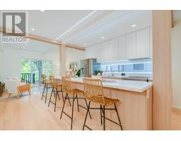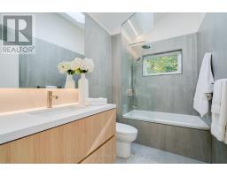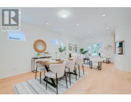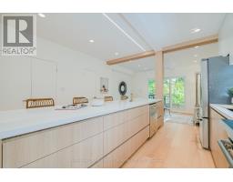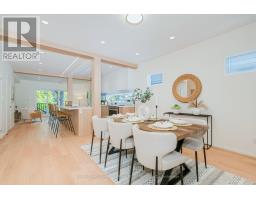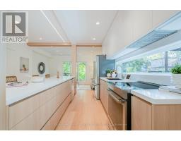 Step into Scandinavian serenity in this custom-crafted 4+1 bedroom, 4-bathroom family home, nestled on a rare 28-foot wide lot with private drive and two-car parking, in-law suite, on a quiet one-way street in the heart of Leslieville. Designed by award-winning studio The Atelier SUN, this just shy of 2000 square foot (total finished space) residence blends thoughtful functionality with a tranquil, modern aesthetic. The sweeping open-concept main floor welcomes you with sculptural wood beams, warm natural materials, and a double front hall closet tucked behind a circular architectural niche. The living and dining areas flow effortlessly into a show-stopping flat-front modern kitchen, anchored by a 12-foot island, custom cabinetry, hidden pantry and bar, and an ultra-cool architectural window backsplash. Soft curves and indirect lighting create a calming rhythm throughout. The kitchen overlooks a cozy family room with oversized sliding doors that dissolve the boundary between indoors and out-watch TV while feeling immersed in the garden. Upstairs, skylights and white oak floors lead to a serene primary suite with soaring cathedral ceilings, wall to wall closets, a private balcony, custom millwork with inset lighting, and a skylight that bathes the space in natural light. Three additional bedrooms offer generous proportions and closets, while the bathrooms feature custom vanities and organic finishes that echo the home's Scandinavian soul. The south-facing backyard is a fully fenced, sun-drenched oasis-perfect for quiet mornings or lively gatherings .The lower level offers a self-contained guest or in-law suite with its own kitchen, laundry, blonde laminate floors, and private entrance-ideal for extended family, nanny quarters, or flexible living. Where Nordic style meets Leslieville chic, this home has been crafted for calm but built for life! (id:61594)