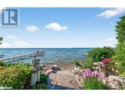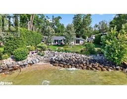 South-facing, 100 ft private, level lot on Lake Simcoe with a stunning park-like setting. The beautifully enhanced waterfront features granite stonework, including elegant stairs and a reinforced shoreline. Enjoy peaceful lake views from the waterside stone patio—perfect for relaxing or entertaining. The property also includes front and rear patios, surrounded by lush, professionally landscaped gardens. This charming 3+1-bedroom bungalow including a spacious 17' x 10' guest Bunkie, complete with a 3-piece bath—ideal for hosting friends or extended family. The open-concept interior includes a well-appointed kitchen with breakfast bar, built-in oven, microwave, and stovetop, all overlooking the large living room with a stone fireplace and breathtaking water views. Generously sized bedrooms, a dedicated office space, and a laundry room with excellent storage make this home as practical as it is beautiful. Conveniently located midway between Barrie and Orillia for easy access to shopping and amenities, and just minutes from Simcoe Loop Trail (walking, biking, running etc), skiing, and golf. (id:61594)