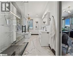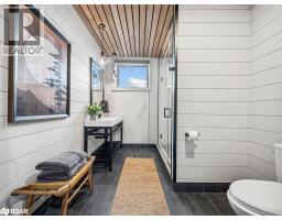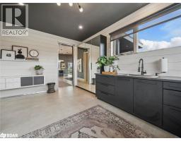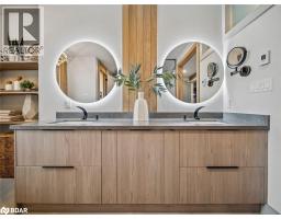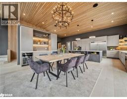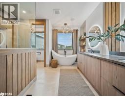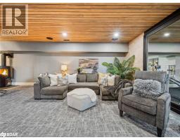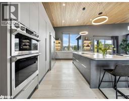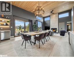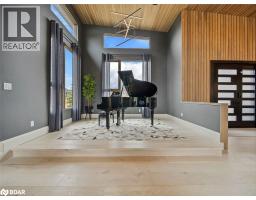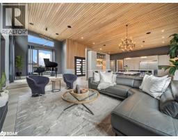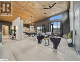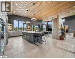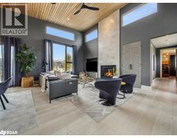 MODERN, ORGANIC & TIMELESS CUSTOM-BUILT BUNGALOW FEATURING OVER 5,500 SQFT OF COMFORT-DRIVEN LIVING SPACE! Located in the equally coveted and convenient Windrose Estates, this home is mere minutes from all area amenities, including Osler Bluffs, Blue Mountain and downtown Collingwood. The open concept main level features a wood slat 12’-16’ vaulted ceiling, wide plank engineered oak flooring and oversized windows to take advantage of the natural light and escarpment views. Designed to gather in style with a European kitchen with built-in appliances and a separate coffee/wine bar, elevated grand piano lounge, integrated Elan entertainment system (14 zones/26 built-in speakers) and multiple walkouts to the 42’x14’ composite deck. Support your healthy and active lifestyle in the home gym, yoga studio, cedar/basswood glass front HUUM sauna, 6-person hot tub, large music/games room and with the bonus of an additional lower level laundry/sports storage room for all your gear. After a long day of playing, cozy up in front of one of the three fireplaces and enjoy a movie in the theatre room, great room or with a book in the chill lounge. Plenty of space for family and friends with 3+2 bedrooms (one currently used as a home office) and 3.5 bathrooms. Triple garage with height for car lift and a separate entrance to the lower level. #HomeToStay (id:61594)