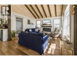 Welcome to 7 Pellum Street, a charming and beautifully appointed 2-bedroom, 1-bathroom all-season cottage nestled in the delightful community of Turkey Point, built in 2022. Located on a tranquil dead-end street, this home offers a serene and picturesque setting. Step inside to discover soaring vaulted ceilings, expansive bright windows that flood the home with natural light, and exquisite custom trim that adds a touch of elegance. Durable, easy-to-maintain vinyl plank flooring flows seamlessly throughout, enhancing the home's modern appeal. The open-concept kitchen, living, and dining area is anchored by a cozy electric fireplace with a rustic wood mantle, creating a warm and inviting atmosphere. The chef's kitchen is equipped with sleek stainless steel appliances, subway tile backsplash, and a large butcher block island offering both style and functionality. For year-round comfort, a heat pump and additional electric heaters in the bedrooms ensure a perfect climate, no matter the season. An efficient on-demand hot water heater further elevates convenience and eco-friendliness in daily living. Outside, the expansive yard invites you to relax or entertain in style, with a spacious deck and a charming fire-pit area, ideal for cozy evenings under the stars. A brand-new septic system provides added peace of mind, ensuring worry-free living. Most furnishings will remain, making this property completely move-in ready, whether you’re seeking a year-round home or a peaceful weekend retreat. Just a short 4-minute walk to the nearest beach access point, this home offers the best of both comfort and location. Don’t miss your chance to own your very own slice of Turkey Point paradise! Schedule your private showing toda (id:61594)