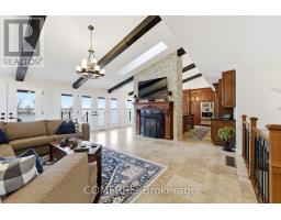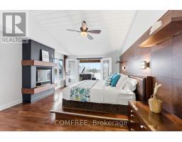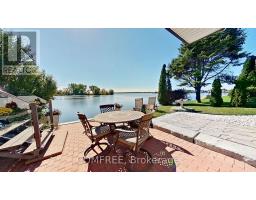 Welcome to your lakeside escape, a stunning southern-exposure waterfront home at the end of a quiet cul-de-sac, set on a protected cove of Presqu'ile Bay with 175 ft of pristine shoreline. A true boater's paradise, this property offers calm, sheltered waters for docking and kayaking, a Seadoo/kayak lift, and quick access to Lake Ontario for open-water adventures. Just a 2-hour drive from the GTA and five minutes to Brighton's charming downtown, this rare waterfront location also offers full municipal services and easy access to Presqu'ile Provincial Park walking trails and sandy beaches.Wall-to-wall French doors span the length of the home, filling the main level with natural light and panoramic Bay views. The open-concept layout features vaulted beamed ceilings, a floor-to-ceiling stone fireplace, and a gourmet kitchen with granite counters, a 9-ft island, gas cooktop, heated floors, Sub-Zero fridge, and brand-new Bosch oven and dishwasher. The luxe primary suite includes a fireplace, walk-in closet with laundry, and direct hot-tub access. A main-level 4-pc bath with heated floors and a second bedroom or study complete this level. Step onto the 50-ft covered deck with hot tub and enjoy the lake breeze. Expansive water views from the main level create a serene, almost yacht-like experience.The bright finished walkout lower level offers excellent potential for an in-law suite or separate apartment, with large windows overlooking the Bay, a rec room, two bedrooms, a 4-pc bath, laundry room and a hobby room/gym with plumbing and patio doors to a second patio.Additional features include an attic above the garage, enclosed storage under the deck, parking for six plus an RV/boat pad, a hard-wired natural gas generator, and brand-new furnace and AC for year-round comfort. Where refined living meets extraordinary waterfront beauty - a rare opportunity on Presqu'ile Bay. (id:61594)