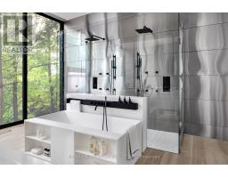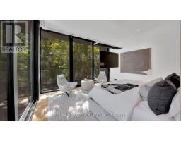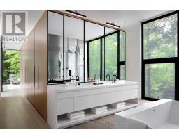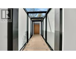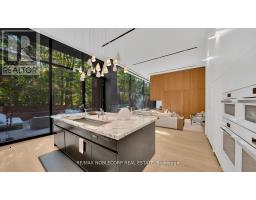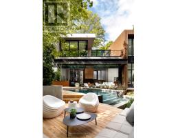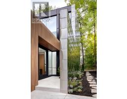 Inspired by the precision and versatility of a Swiss Army knife, this internationally award-winning, architecturally significant residence offers over 6,000 sq.ft. of luxury living on a private, forested ravine cul-de-sac. Designed with dynamic multi-level functionality, its dual wings are connected by a sleek glass bridge and clad in a striking blend of reflective titanium, simulated walnut, and rich black Palisade panels. A descending entrance introduces the main living area where a panoramic fireplace anchors open-concept spaces extending to the outdoors through a dramatic, folding glass hangar door. Every detail is engineered for seamless living and entertaining from the indoor/outdoor dining areas, hidden wine closet, and wet bar to the amenity-rich lower level featuring a full kitchen, gym, and theatre. The primary suite is a true retreat with his-and-hers closets, a spa-inspired ensuite, and a private balcony overlooking the ravine. Outside, a tiered infinity pool, integrated outdoor kitchen, and fire table are enveloped by nature, creating a breathtaking, resort-like oasis. (id:61594)