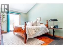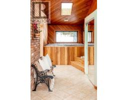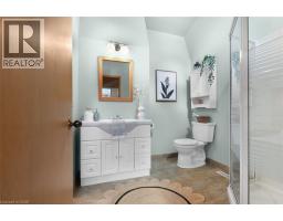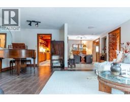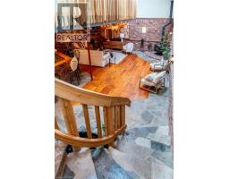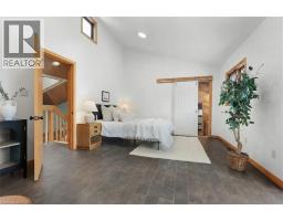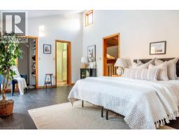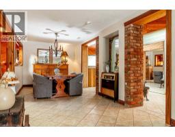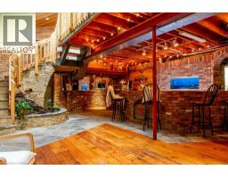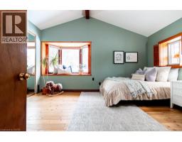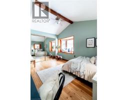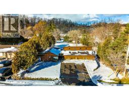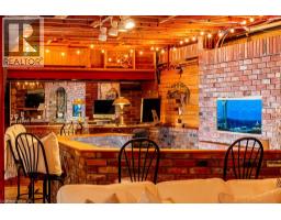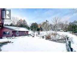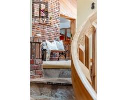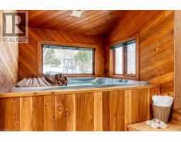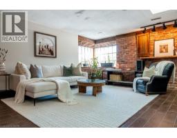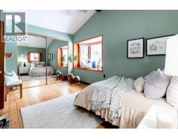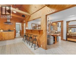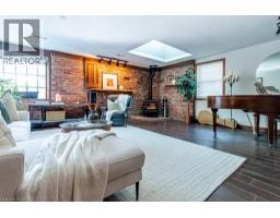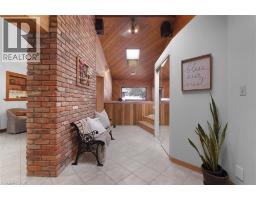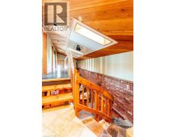 Tucked on a quiet cul-de-sac with Escarpment views and access to the Bruce Trail, this rare mid-century modern ranch features a loft and blends modern style with rustic, handcrafted character. Wrapped in natural textures - flagstone, reclaimed brick, and warm woods - and bathed in sunlight from 19-foot vaulted pine ceilings and multiple skylights, this 3 bed, 2 bath home (including 2 bedrooms and a full bath in the airy loft) delivers major one-of-a-kind energy. Set on a private 84 × 215 ft lot, it offers a true sense of retreat. The foyer introduces the home’s boutique atmosphere with natural timber, masonry accents, angled ceilings, and soft daylight. An indoor hot tub adds unexpected luxury, framed by picture windows overlooking the serene backyard. The main living areas flow easily from here: a warm living room with gas fireplace, crafted wood shelving, and a charming corner window, an open dining space connected to a stunning kitchen with exposed beam trusses, granite counters, built-in gas cooktop, floating shelves, and a modern chimney hood. A main-floor primary suite sits privately at the rear with a 3 piece ensuite and convenient laundry nearby. The lower level is a true entertainer’s playground, showcasing floor-to-ceiling brick, a spacious bar, tranquil indoor waterfall, and a natural wood-burning stove. This impressive space remains visually linked to the main floor with an open view to the loft above. Recent updates include 2019 furnace, AC, and owned water heater, and a 2017 metal roof with 8 skylights, and a 20 × 20 insulated garage with inside entry. (id:61594)
