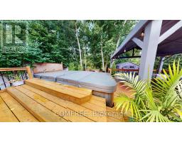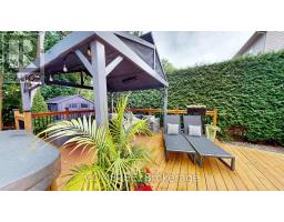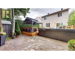 Beautifully renovated 2-storey home offering 1900 sq. ft. of living space, featuring 3+2 bedrooms and 4 bathrooms. Extensive renovations completed in 2021 showcase high-end, modern finishes throughout. The bright and inviting main floor is filled with natural light from large windows overlooking a landscaped backyard and spacious deck (2020). The kitchen boasts a quartz countertop, ample cabinetry, and contemporary fixtures, while the adjacent dining area and generous den provide flexibility for work or leisure. Upstairs, the primary bedroom impresses with a vaulted ceiling, a luxurious ensuite with a double-sink vanity, a large glass-enclosed shower, and a walk-in closet. Two additional bedrooms, sitting/flex area and a full bathroom complete the upper level. The fully finished basement offers a large family room, two additional bedrooms, and a full bathroom ideal for guests, extended family, or recreational use. The insulated and heated double garage adds year-round convenience. Recent updates include roof (2019), main bathroom (2025), and heat pump (2024). Situated on a quiet crescent with no rear neighbours, this property provides a private, treed low maintenance backyard oasis including a raised garden bed area, with a hugh deck great for entertaining with room for sitting/lounging and a swim spa area next to the spacious gazebo, while being close to parks, public transit, and shopping. (id:61594)