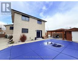 Modern Renovated 4-Level Backsplit With Inground Heated Pool & 5 Bedrooms Above Grade! Located on desirable Taymall Street on Hamilton's Upper Mountain, this fully finished home offers stylish modern updates throughout and an ideal layout for family living or an in-law suite setup.The main floor features an open and bright layout with beautiful hardwood flooring, updated lighting, and a sleek IKEA kitchen with quartz countertops and backsplash (2023). The upper level includes 3 generous bedrooms and a modern 5-piece bathroom with granite countertops (2020). The ground-level lower floor includes 2 additional bedrooms, a separate side entrance, and an updated 4-piece bathroom (2023) - perfect for extended family or multi-generational living. The finished basement level features a cozy gas fireplace with mantle (2021), offering a warm and inviting family/media room, plus a convenient walk-up from the basement directly into the garage. Refinished stairs and modern flooring tie the entire home together. A rare and valuable feature of this layout is the full storage space under the first lower-level floor, providing excellent space for seasonal items. Step outside from the first lower level to your private backyard retreat with an inground pool, gazebo, and fully fenced yard - ideal for entertaining. Recent exterior improvements include newer windows and doors (2023), garage door (2023), exterior pot lights, exposed aggregate driveway (2023), gas pool heater and pump (2021), and roof/eaves (2020). A/C replaced approx. 2021. Located in a fantastic, family-friendly neighbourhood close to schools, parks, shopping, transit, the LINC and all amenities. A stylish and move-in ready home offering flexible living space, modern décor, and an amazing backyard oasis! (id:61594)