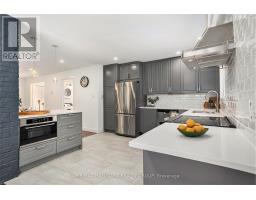 Welcome to this beautifully renovated mid-century modern 3+3 bedroom, 3-bathroom bungalow in the heart of Beaverbrook, steps to top schools, shopping, transit, & leisure pathways. Tastefully updated to reflect modern style while retaining its classic 1960s charm, this move-in ready home showcases upgrades sure to impress. The main level features rich hardwood floor, an open-concept design, & a cozy wood-burning brick fireplace dividing the living and dining areas. Floor-to-ceiling windows, a hallmark of mid-century modern architecture, flood the home with natural light, while a terrace door opens to an oversized deck + private landscaped garden with gazebo perfect for summer gatherings or quiet relaxation. The chef's kitchen shines w quartz counters, stainless steel appliances, ample cabinetry, & a double undermount sink. 3 generous bedrooms include the primary suite, which accommodates a king set, offers double closets, & boasts a stylish 3-piece ensuite w glass shower. The main bath features double sinks, quartz counters, porcelain tile, + a full tub/shower. A side mudroom entrance w laundry provides convenience and connects directly to the finished lower level. Offering remarkable versatility, the lower-level suite includes radiant in-floor heating, three bedrooms, a full bathroom, its own laundry, and private entrance ideal for teens, multi-generational living, or rental income. Notable upgrades include: hydronic in-floor radiant heating powered by gas on both levels, a main-level heat pump for supplemental winter warmth and summer air conditioning, a high-efficiency tankless hot water system, 200-amp panel with updated wiring & plumbing, recently re-shingled roof. Complete w a spacious 2 car garage, this home sits on a quiet street within Beaverbrook, a planned community by renowned Teron Construction. A rare opportunity blending timeless design with modern comfort in one of Kanata's most sought-after neighbourhood. OPEN HOUSE SUN. SEPT 7TH 3PM-5PM (id:61594)
