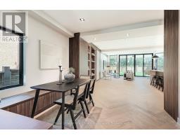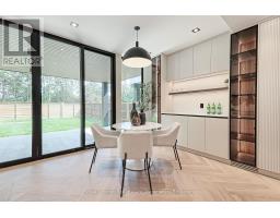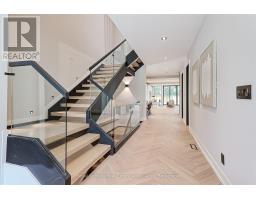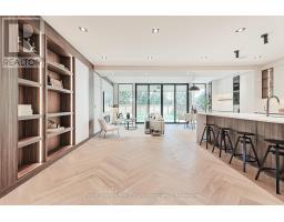 Presenting a remarkable opportunity to own a spectacular luxury residence meticulously constructed by Montbeck Developments. Move in today! This masterfully curated open-concept home exudes sophistication with herringbone-laid white oak flooring, dramatic ceiling heights, floor-to-ceiling windows that invite an abundance of natural light throughout. Enjoy the pleasure of optimal indoor/outdoor flow from the living room, dining room and kitchen each opening to covered patio & landscaped backyard. The bespoke designer kitchen is a statement in form and function, appointed with top-tier Fisher & Paykel appliances, exquisite quartz countertops and full-height backsplash, an oversized waterfall island ideal for elevated entertaining, & a walk-in pantry offering both elegance and practicality. The adjoining living and dining spaces exude sophistication and warmth, featuring custom millwork and a sleek linear electric fireplace. The primary suite includes a bathroom with soaker tub, separate glass shower, and dual-sink vanity, with park & lake views. A fully customized walk-in closet featuring built-in illuminated lighting, tailored cabinetry, and thoughtfully designed storage to elevate everyday living. Three more thoughtfully designed bedrooms, featuring custom built-in desks, tailored closets, and stylish ensuites adorned with concrete-inspired porcelain tile and premium designer fixtures. The fully finished lower level enhances the homes living space, offering a spacious family or recreation room complemented by a sleek 3-piece bathroom. Designed with comfort and function in mind the fully finished lower level enhances the homes living space, also features radiant heated floors, a rough-in for a home theatre or fitness studio. Integrated ceiling speakers provide ambient sound throughout, a well-appointed mudroom with abundant custom storage, a stylish servery, & an attached garage is finished with a striking black-tinted glass door for a modern, architectural touch! (id:61594)