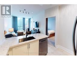 Rarely offered sophisticated 1-Bedroom + 2 Dens + 2 Washrooms upgraded condominium apartment offering elevated urban living in the beautiful and elegant iconic City Gate 1, ideally situated in the heart of premium downtown Mississauga. This stunning 783sf suite features breathtaking, unobstructed views overlooking Celebration Square from both the living room and the spacious private balcony, along with a sleek modern design, highly functional open-concept layout, and soaring 9-foot ceilings. The fully renovated kitchen is thoughtfully designed with abundant storage space, quartz countertops, a breakfast bar, custom porcelain tile flooring, backsplash, and built-in modern graphite stainless steel appliances. The spacious primary bedroom includes a 4-piece ensuite, generous his-and-hers closets, an additional freestanding mirrored closet, and floor-to-ceiling windows with beautiful views. A large open den provides the perfect space for a home office or can serve as a dining area for family and entertaining. A secondary, separate and spacious enclosed den with a closet offers flexible space ideal for a second bedroom. Two bathrooms and a convenient walk-in laundry room complete this exceptional suite. Residents of City Gate 1 enjoy a professionally managed building with premium amenities like an indoor swimming pool, sauna, game, exercise, meeting and party rooms, guest suites and 24-hour concierge and security, all within walking distance to Square One Shopping Centre, Celebration Square, Mississauga Central Library, YMCA, Sheridan College, and the Living Arts Centre, as well as parks, dining, entertainment, and public transit nearby.*** Very reasonable Condo Fee also includes Hydro, Internet and Cable TV *** (id:61594)
