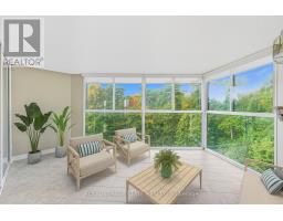 Welcome to The Highlands by the Park; 20 Berkley Road. Nestled atop a hill at the end of a quiet cul-de-sac in historic West Galt, this prestigious condominium offers tranquility, privacy, and sweeping views of nature and the city skyline. Overlooking a majestic woodlot, Victoria Park, and beyond, this building is one of Cambridge's hidden gems. This spacious 2,418 square foot, carpet-free unit offers a rare combination of size, layout, and natural light. With 3 generously sized bedrooms, 2 full bathrooms, and a thoughtfully designed floor plan, it's ideal for those seeking a blend of comfort and functionality. Step into an impressive foyer with mirrored walls and a large closet before entering the bright eat-in kitchen, complete with ceramic tile, crisp white cabinetry, built-in range top, track lighting and a cozy breakfast nook that looks out over lush greenery. The kitchen opens into a formal dining room with laminate flooring and elegant wall sconces; perfect for entertaining. The adjacent oversized living room features a wood-burning fireplace (sold in as-is condition) and leads to a bright all-season solarium with floor-to-ceiling windows, perfect as a den, office, or creative space. Down the hallway, you'll find three spacious bedrooms, including a large primary suite with two large windows, an expansive walk-in closet, and a 5-piece ensuite. A second 4-piece guest bath serves the remaining bedrooms. The in-suite laundry closet is conveniently tucked away off the main hallway. Building amenities include a rooftop terrace with panoramic views, ample seating, and barbecue, a party room with full kitchen and lounge area, meeting room, exercise room, and beautifully maintained common spaces. This unit includes one underground parking spot with a tandem storage locker. Don't miss this rare opportunity to live in a peaceful, elevated community surrounded by nature, just minutes from the charm and culture of West Galt. (id:61594)