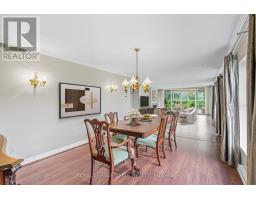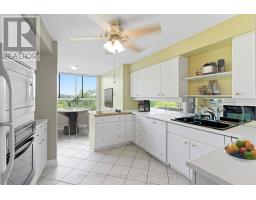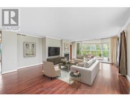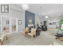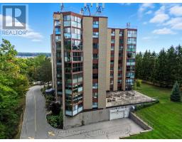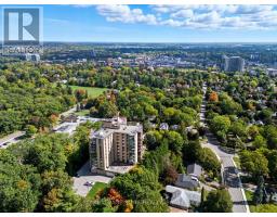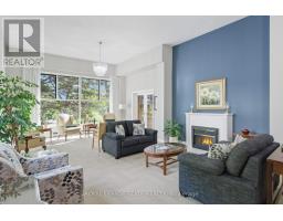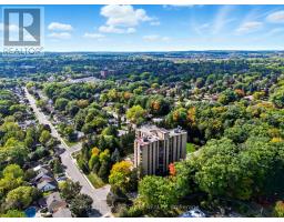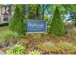 Welcome to The Highlands by the Park; 20 Berkley Road. Nestled atop a hill at the end of a quiet cul-de-sac in historic West Galt, this prestigious condominium offers tranquility, privacy, and sweeping views of nature and the city skyline. Overlooking a majestic woodlot, Victoria Park, and beyond, this building is one of Cambridge's hidden gems. This spacious 2,418 square foot, carpet-free unit offers a rare combination of size, layout, and natural light. With 3 generously sized bedrooms, 2 full bathrooms, and a thoughtfully designed floor plan, it's ideal for those seeking a blend of comfort and functionality. Step into an impressive foyer with mirrored walls and a large closet before entering the bright eat-in kitchen, complete with ceramic tile, crisp white cabinetry, built-in range top, track lighting and a cozy breakfast nook that looks out over lush greenery. The kitchen opens into a formal dining room with laminate flooring and elegant wall sconces; perfect for entertaining. The adjacent oversized living room features a wood-burning fireplace (sold in as-is condition) and leads to a bright all-season solarium with floor-to-ceiling windows, perfect as a den, office, or creative space. Down the hallway, you'll find three spacious bedrooms, including a large primary suite with two large windows, an expansive walk-in closet, and a 5-piece ensuite. A second 4-piece guest bath serves the remaining bedrooms. The in-suite laundry closet is conveniently tucked away off the main hallway. Building amenities include a rooftop terrace with panoramic views, ample seating, and barbecue, a party room with full kitchen and lounge area, meeting room, exercise room, and beautifully maintained common spaces. This unit includes one underground parking spot with a tandem storage locker. Don't miss this rare opportunity to live in a peaceful, elevated community surrounded by nature, just minutes from the charm and culture of West Galt. (id:61594)