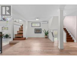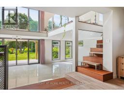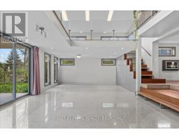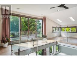 Thoughtfully reimagined in 2022 with contemporary California-style addition by Angelica Homes, this elegant home reflects lifestyle that values love of nature, craftsmanship & timeless design. Open-concept dining & living area with designer tiles and soaring wall of southeast-facing sliding doors & windows provides plenty of natural daylight. Back hallway with wardrobe closet, laundry and luxurious bathroom with Spanish designer tile accent wall and powder room leads to outdoors & swim spa. Architecturally crafted Brazilian Cherry/ Walnut staircase ascends to expansive 2nd level finished with Mercier hardwood floors. Its open layout, dual wrap-around mezzanine with custom glass railings is ideal for home office & gym/yoga space. Panoramic views from every window! Two tranquil bedrooms with oversized doors and stunning bathroom complete this level, which connects to primary suite by balcony with custom railings and triple sliding door. Main level includes modern kitchen with island & granite countertops, eating area, raised snack nook, cozy den and bedroom next to full bath. Fully finished lower level offers private entrance, family room with kitchenette, office, full bath and laundry. Energy-Efficient heat. and cool. System includes in-floor heating, radiators, heat pumps and AC. Private, backing onto city park 0.6-acre lot offers endless possibilities: tennis/basketball court/swimming pool. Spacious, covered concrete patio leads to insulated year-round extra-deep swim spa with powerful jets & automated Covana Cover. Oversized shed split between garden tools storage & hobby space. Front yard with circ. driveway offers10 park. spots & 2 in gated area, 2 Level2 electric charg. stations and prof. landscaped garden. Min. from downtown Burlington, waterfront, beach, LaSalle Park & Marina, RBG, biking trails, schools, shopping, this home offers ultimate blend of luxury, lifestyle, and location. Access to Burlington GO, major HW in Niagara and Toronto directions. (id:61594)