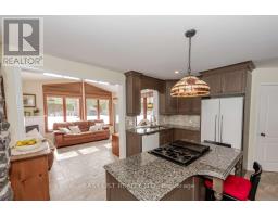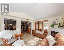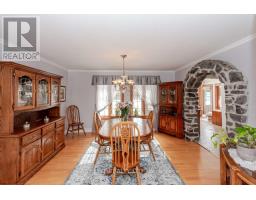 For more info on this property, please click the Brochure button. This charming custom-built Canadiana-style home offers peaceful country living on a beautifully treed, low-maintenance half-acre lot, with no front neighbours and just 10 minutes from all essential amenities and the hospital. The home features a freshly stained (2024) stone facade and board-and-batten wood siding. Elegant stonework flows from the driveway to the front entrance and into the backyard patio, which includes a fire pit, hot tub hookup, and natural gas line for a BBQ. Mature perennial gardens surround the home, adding colour and charm year-round. Inside, rich hardwood floors span the main and upper levels. The living room features a cozy wood-burning fireplace and opens into the dining area. A beautiful stone archway connects the dining space to the kitchen, which offers granite countertops and ample cabinet space. At the rear of the home, the sun-filled solarium provides a peaceful retreat with large windows overlooking the private yard and a natural gas fireplace for comfort. A den with Murphy bed sits adjacent to a full bathroom with a walk-in tub, making the main level ideal for guests or multi-generational living. Upstairs, a lovely hardwood staircase leads to three spacious bedrooms, including a generous primary suite with a walk-in closet. A 5-piece bathroom with in-suite laundry completes the upper floor. The finished basement features a family room with electric fireplace and surround sound, a bathroom with shower, cold storage, and a cedar closet. The attached single-car garage offers direct home access. Inclusions: Kitchen and laundry appliances, Murphy bed, drapes, and blinds. Extras: Bell Fibe, Generac generator, central vacuum, top-tier water system (2022), furnace (2021), AC, hot water tank (2021), well pump (2023), backup sump (2024), vinyl flooring (2023). A rare blend of rural charm and modern convenience. (id:61594)