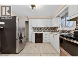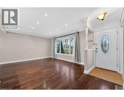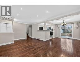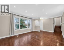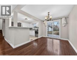 Fully finished, 4 level side split, located in family friendly neighborhood. Step inside and you will appreciate the open concept main level with gleaming hardwood floors and plaster coved ceiling detail. Bright, spacious living room features over sized windows and pot lights. Patio door access from dining room to huge back yard. Modern, updated kitchen with white cabinetry, under mount sink and mosaic tile backsplash. Upper level offers 3 spacious bedrooms with dark stained hardwood floors. Tastefully updated main bathroom with white vanity, tiled floor and shower. Bring the in-laws! Separate rear entrance to family room level and basement level. Unlimited potential with a second kitchen and 1.5 bathrooms. Ideal location for commuters with easy highway access. Don't miss out. (id:61594)